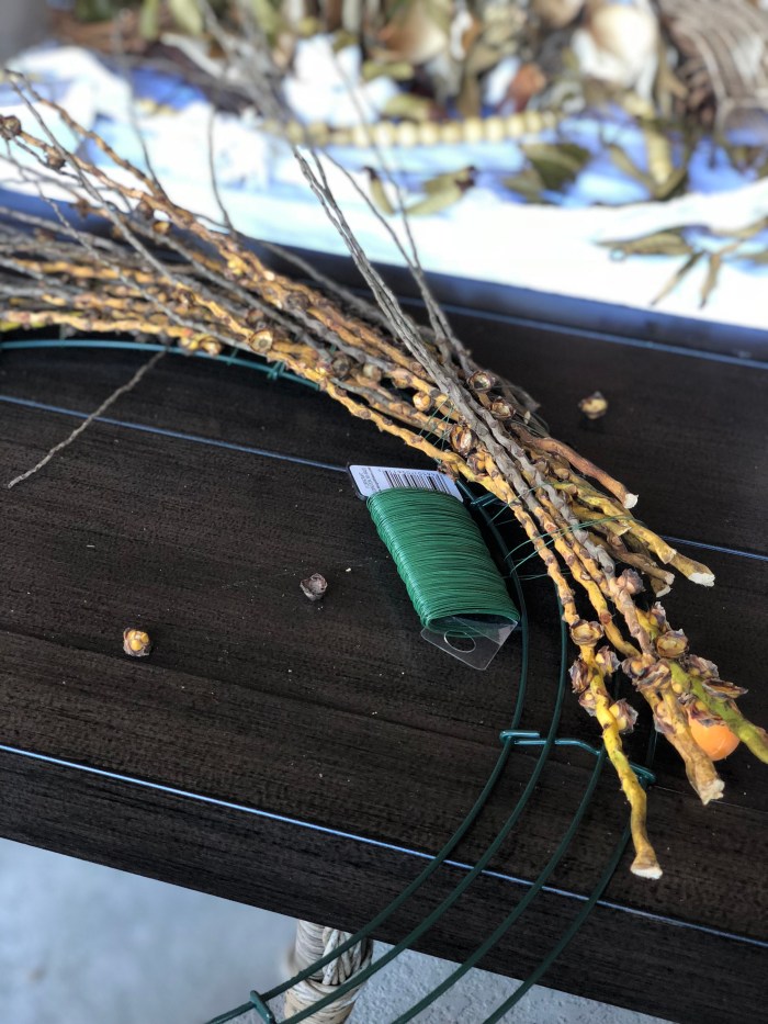 Next, I just started attaching in the same direction using floral wire.