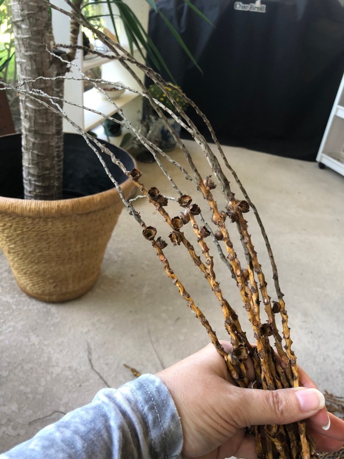 This is my latest project, a wreath made of palm frond droppings! I have 3 HUGE palm trees in my yard and they are constantly seeding and reseeding leaving behind an abundance of wonderfulness!! See what they look like in their natural form here :